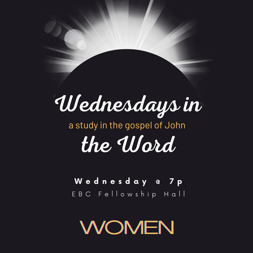 Gather with us on Wednesday evenings to study the Word, pray, and fellowship. We will be doing an inductive study in the gospel of John. See our Wednesdays in the Word: Women nights and other events on the calendar.